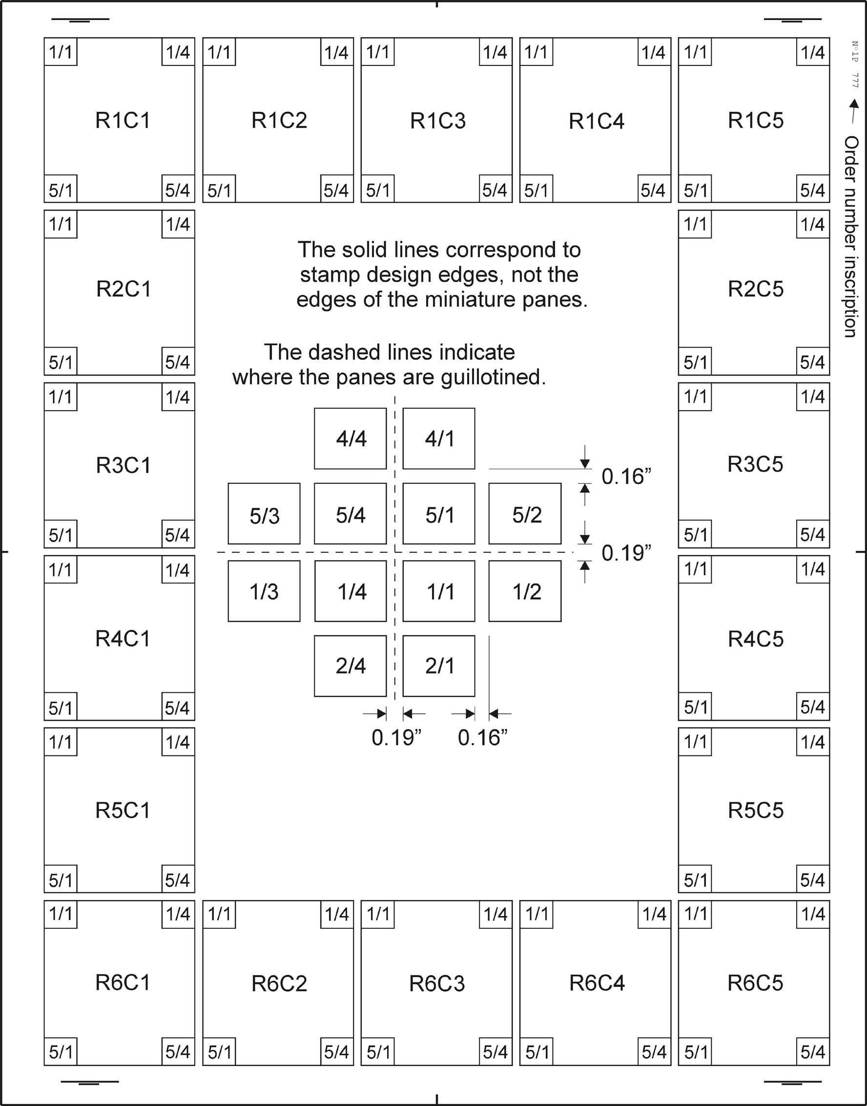 - the illustration showing the sheet layout of six panes (Sheet Type 3) should have inscriptions in all 4 corners of all 6 panes. The shaded illustration of Pane Type 3a correctly shows these four inscriptions.