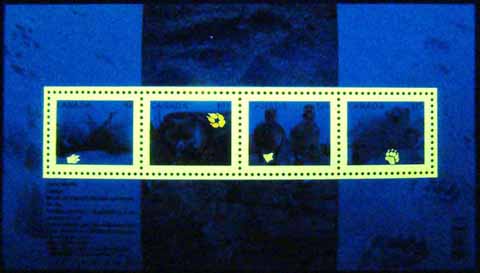 Each stamp (either from the souvenir sheet, coil, or booklet) contains a
