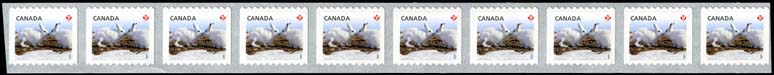 The stamps are rolled in a horizontal format (compared to vertical for the