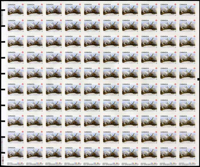 The Permanent stamp was released in an uncut press panel of 100 stamps. This clearly shows the die cutting pattern across the 10 columns