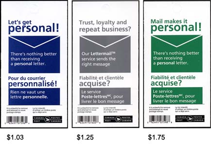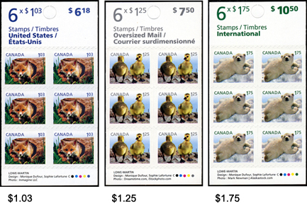 The $1.03, $1.25 and $1.75 designs were issued in booklet "panels" of 6 stamps.
