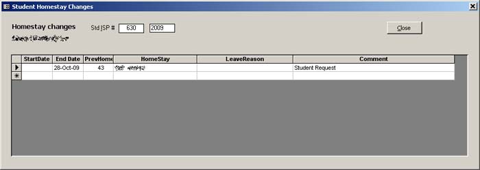 - Track all moves of a student between Homestay families (if any).