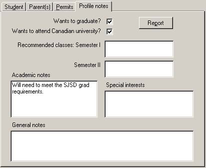- record information to appear on a student's profile report.
